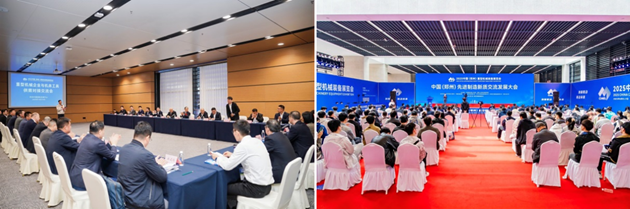 15日至16日,展会同期举办十几场同期:“2025中国(郑州)重型机械装备展览会开幕式”,众多行业领导、企业代表、上下游行业领导出席开幕仪式,在巡馆中与展商亲切交流;“河南省装备制造业创新链产业链协同发展交流会”,邀请中国一重集团有限公司、太原重型机械集团有限公司、机械工业第六设计研究院有限公司、河南威猛振动设备股份有限公司、南阳煜众精密机械有限公司、郑机所(郑州)传动科技有限公司等6家企业围绕产业链协同融合发展进行了深入交流;“中国(郑州)先进制造新质交流发展大会”,汇聚多位行业专家分享、探讨重型机械行业新质生产力培育方向与路径;“重型机械企业与机床工具供需对接交流会”、“重型机械企业与液气密企业供需对接和技术交流会”,吸引了双方行业多家企业协同交流,打通了重型机械行业与机床工具行业、液气密行业的交流通道;“冶金压延机械分会2025年会员大会”、“洗选设备专业委员会、振动机械分会2025年度会员大会”、“物料搬运工程设备成套与服务分会2025年理事会”、“物料搬运工程设备成套与服务分会2025年会员大会”、“2025年物料搬运工程设备成套与服务分会行业讲座”,汇聚细分领域专家与行业企业,紧扣行业热点,打造专业领域交流分享盛宴;“中国重型机械行业产业链协同发展论坛”,邀请多家行业专精特新企业就相关专业产业链发展作专题报告;“2025矿山机械产业链出海实践论坛暨中国重型机械工业年鉴20周年纪念活动”,围绕矿山机械出口现状与发展布局进行交流探讨。